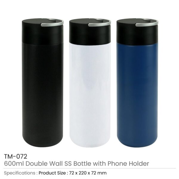 Double Wall SS Bottle, Twist-off Lid with Phone Holder 600 ml