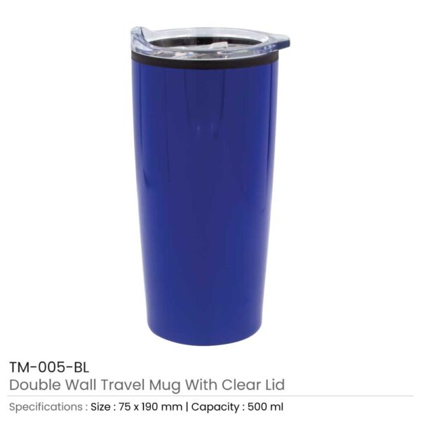 Double-wall travel mugs with clear lids have innovative and unique designs, with one outer wall made of durable AS plastic and the other inner wall made of stainless steel. The base of these double-wall travel mugs is also made of black AS plastic material. However, the lid is made of clear plastic. The structure of these personalized coffee travel mugs is long and sleek, with a 500 ml liquid carrying capacity—the best travel mug printing in the UAE. For the promotion of a company or brand, these are excellent to be used as promotional gifts during promotional events or campaigns.