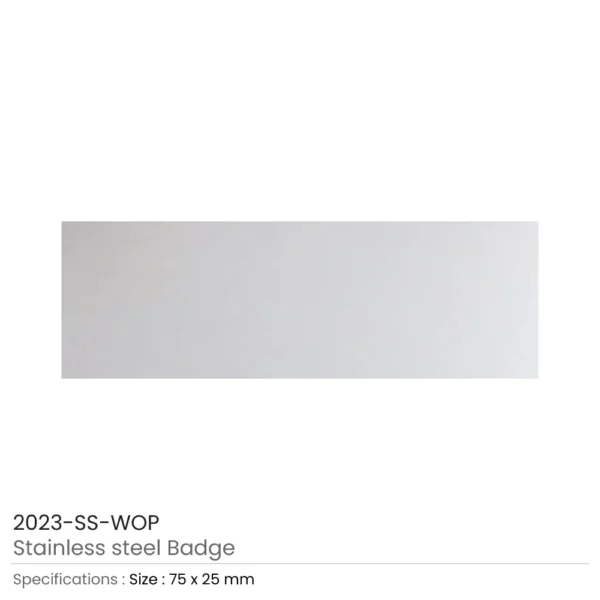 Badges with gold and nickel plates are simple and plain metal badges. These badges are crafted from durable gold and nickel material. Thus, they are strong and reliable. Both metals had a lustrous appearance. So, this branded metal badge is glittery and shiny. Their design is so simple yet classic and elegant. They comprise a design of flat rectangles. Thus, these badges are plain and luxurious. As they are simple, they comprise a large surface area for logo imprinting. The size of this branded metal badge is 75 x 25 mm. Moreover, they are so lightweight and compact.